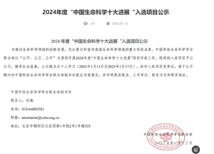 重磅|凈信多樣品組織研磨儀助力科學(xué)家獲得2024年度中國(guó)生命科學(xué)十大進(jìn)展”