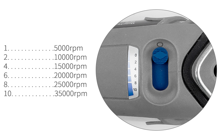 ◆ 可調(diào)速度:5,000 ~ 35,000 rpm,,可調(diào)增量為5000 rpm 。