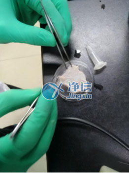 皮膚去脂肪層鋪展開效果 取材,準備放入適配器液氮冷凍