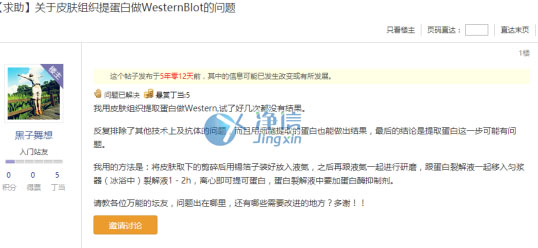 某生物實驗交流網(wǎng)站帖子詢問WB解決方案,無準確回答解決方案。